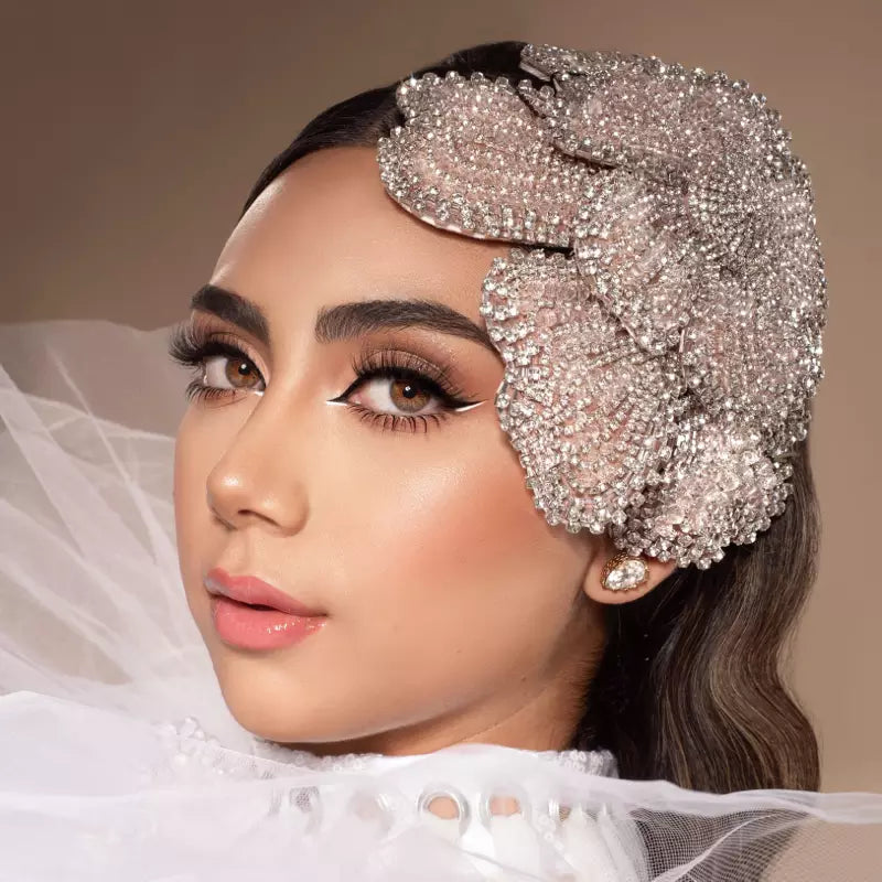 El Tocado Maxi Flor Capella es una pieza exquisita y delicada, un accesorio diseñado para realzar con elementos de flores y cristales que añaden un toque de encanto y elegancia.